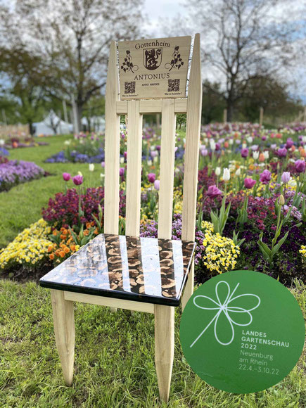 Für unsere Gemeinde und im Zusammenspiel mit unserem Bürgermeister Herr Riesterer durfte ich diese Stuhl entwerfen und fertigen. Er steht nun auf der Landesgartenschau in Neuenburg zusammen mit den anderen Stühlen.